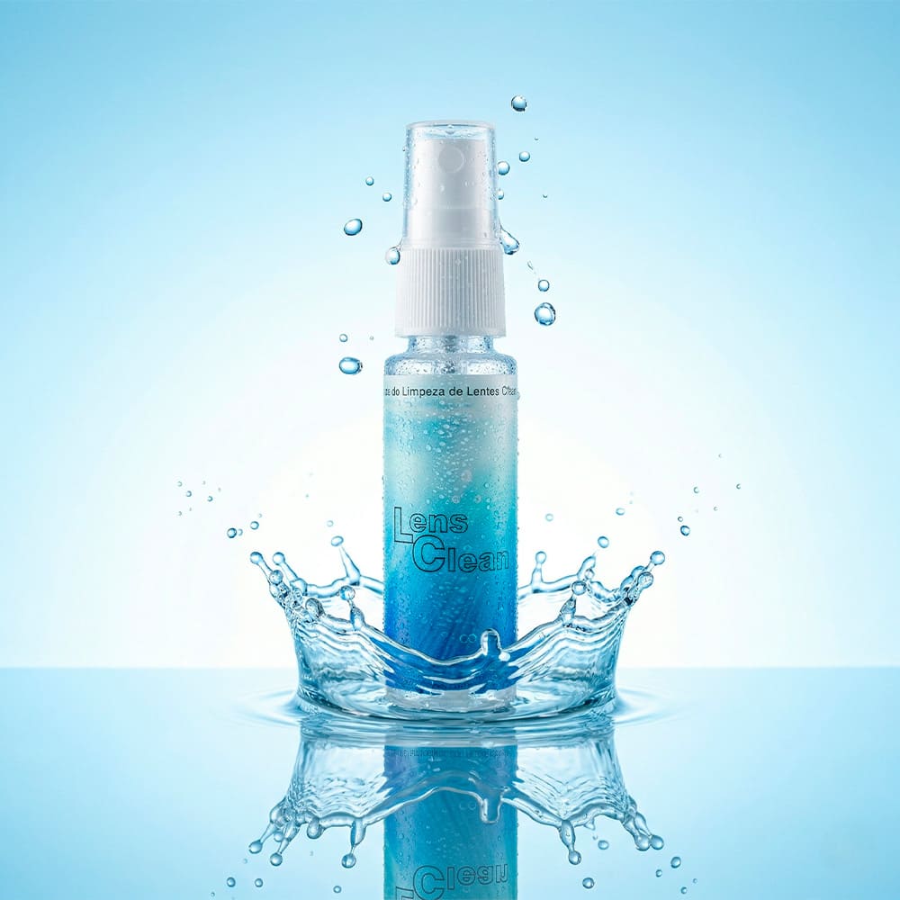 É um spray prático que remove impressões digitais, manchas e pó das lentes, deixando-as impecáveis e sem riscos. Não contém álcool, não sendo prejudicial para o tratamento das lentes oftálmicas. O frasco de 25ml é compacto e fácil de transportar, podendo ser personalizado com o seu design ou logotipo.
